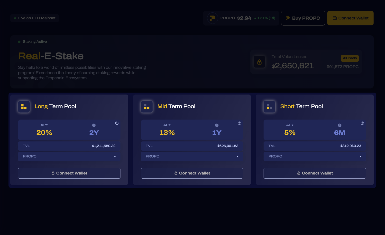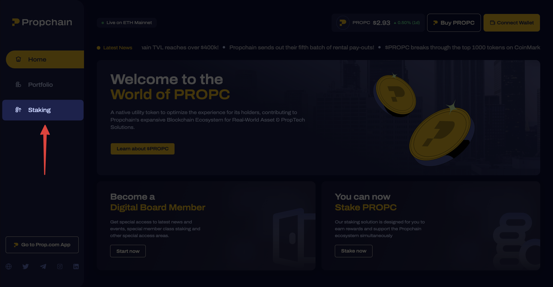 Step 1: Visit the official staking platform of Propchain.